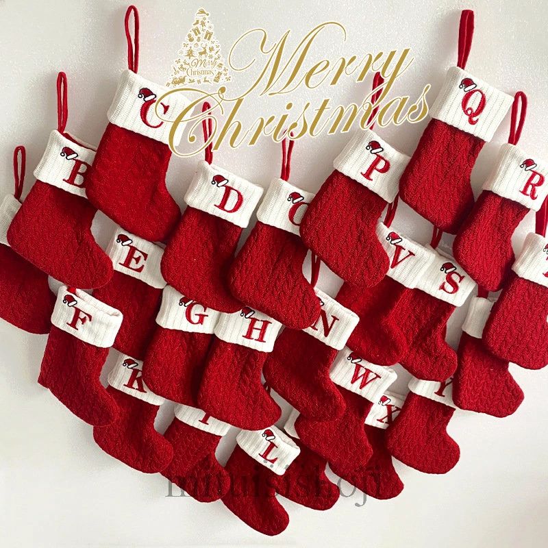 毎月1日ポイント10倍 クリスマス 飾り クリスマスソックス ソックス 靴下 ニット プレゼント入れ クリスマス お菓子入れ オーナメント 英文字 キャンディー バッグ ギフトポーチ 刺繍