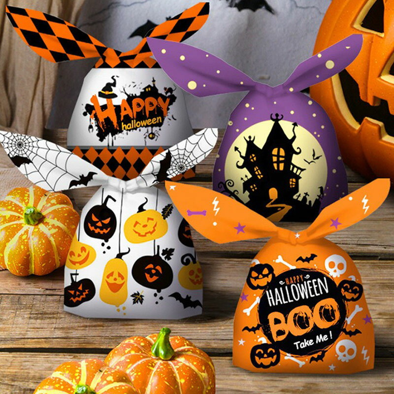 100枚セットハロウィンラッピングキャンディーバッグお菓子袋ウサギ耳小分けハロウィン用品ギフトバッグ・・・