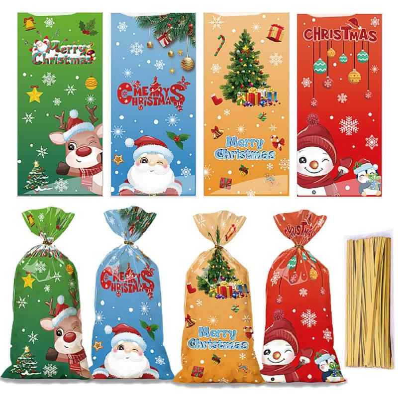 Lakymisy クリスマス ギフトバッグ 100枚セット お菓子 バッグ 巾着バッグ ラッピング袋・・・