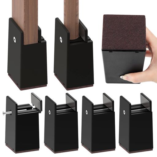 製品仕様パッケージ内容:4個セット(高さ10cm)。適用サイズ:脚サイズ2.8~6cm調節可能。色:ブラック。