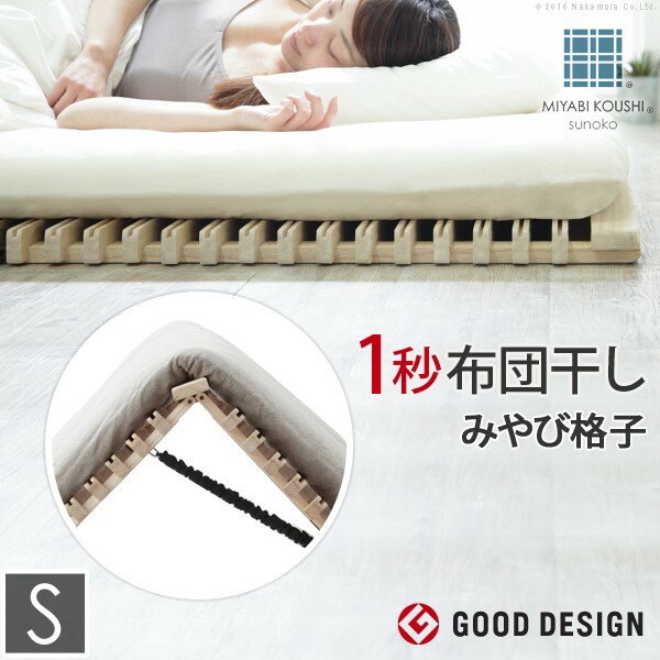 【グッドデザイン賞受賞】 すのこベッド 折りたたみ シングル 通気性2倍で丸めて収納 「みやび格子」・・・