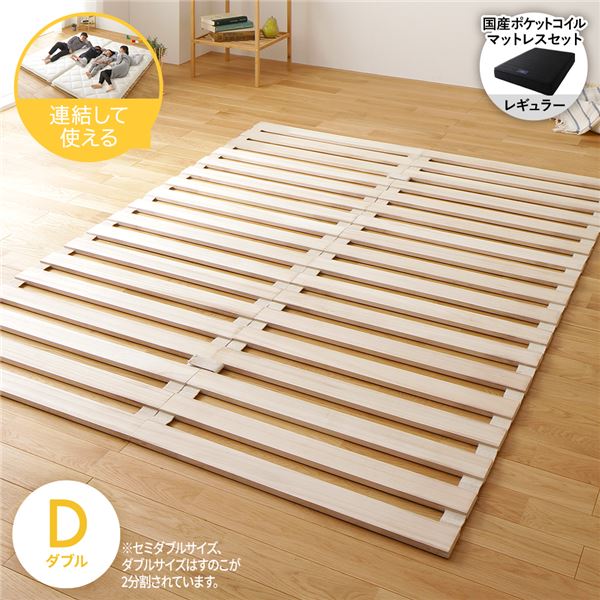 ロール式 桐 すのこ ダブル 国産ポケットコイルマットレス付き(レギュラー) 通気性 木製 天然木 ・・・