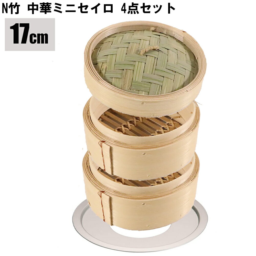 N竹 中華ミニセイロ 17cm セット 蓋1点+身2点+セイロ用受け台1点 カンダ・・・