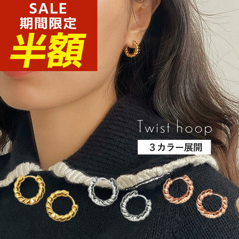 【期間限定!半額!】ピアス フープピアス ねじり ツイスト ツイストピアス 小ぶり キャッチレス ゴ・・・