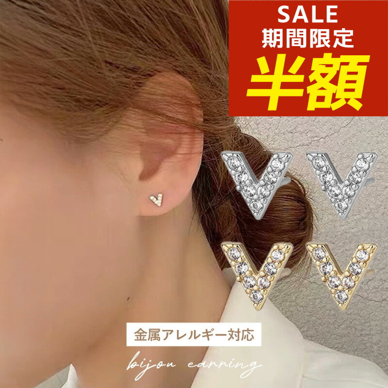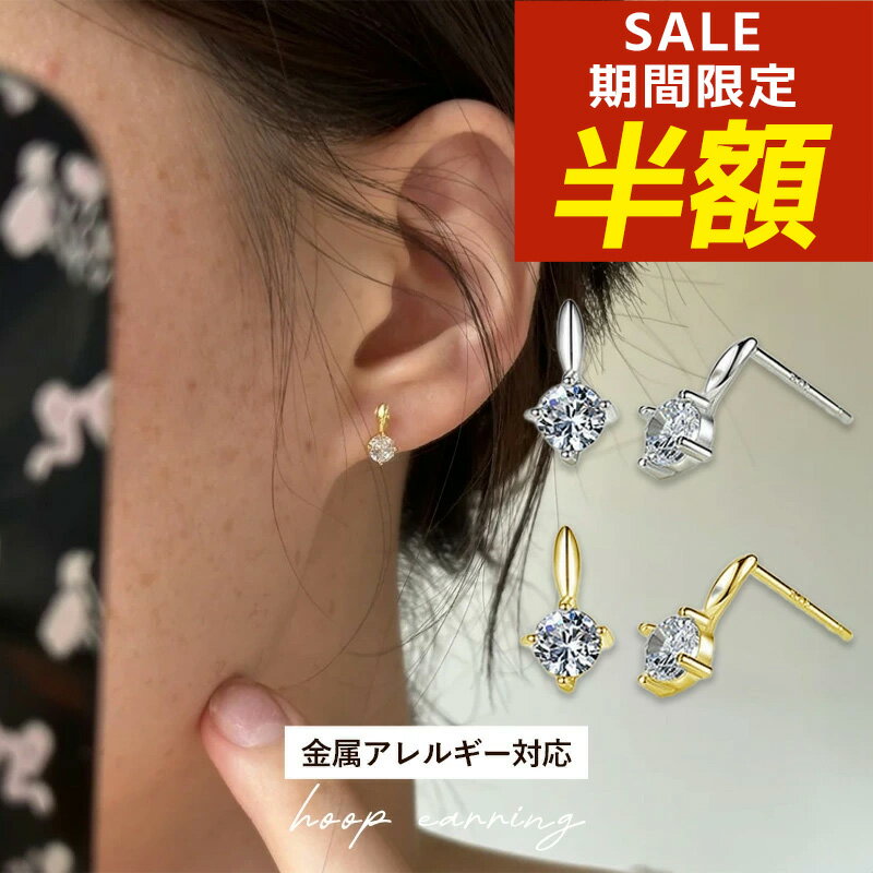 【期間限定!半額!】一粒 ジルコニア ピアス 小ぶり 小さめ シンプル 小さい つけっぱなし V字 ・・・