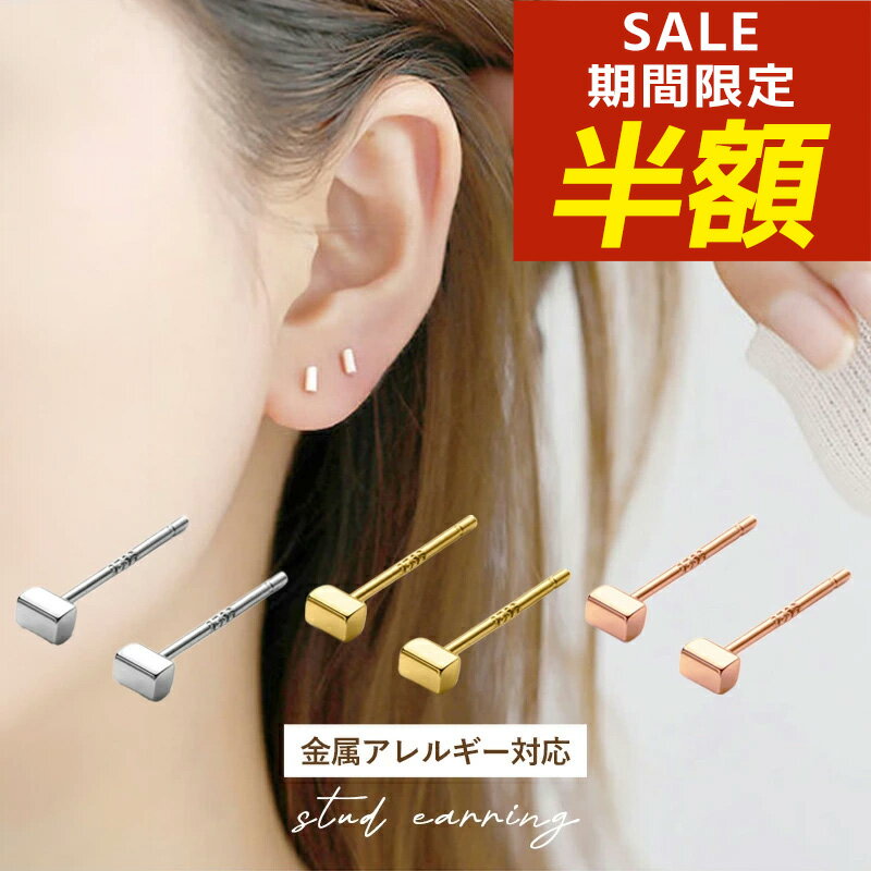 ピアス 金属アレルギー 小さい つけっぱなし 金アレ 極小 シンプル 小ぶり 小さめ 目立たない ニッケルフリー 四角 正方形 長方形 キューブ 小粒 ミニ セカンドピアス オフィス 人気