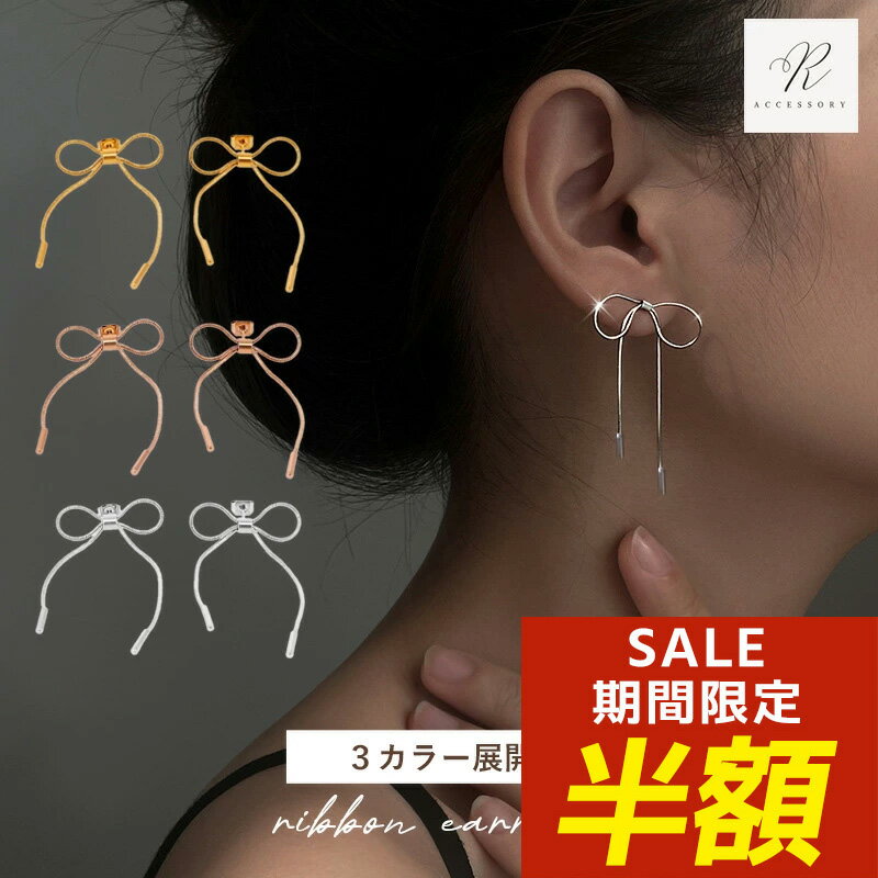 【期間限定!半額!】ピアス つけっぱなし つけっぱなしピアス リボン アシンメトリー スネークチェー・・・