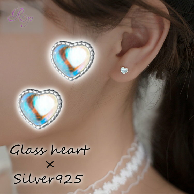 ピアス ハート 小さい ガラス シンプル 軟骨 金属アレルギー シルバー 小さめ シルバー925 ア・・・