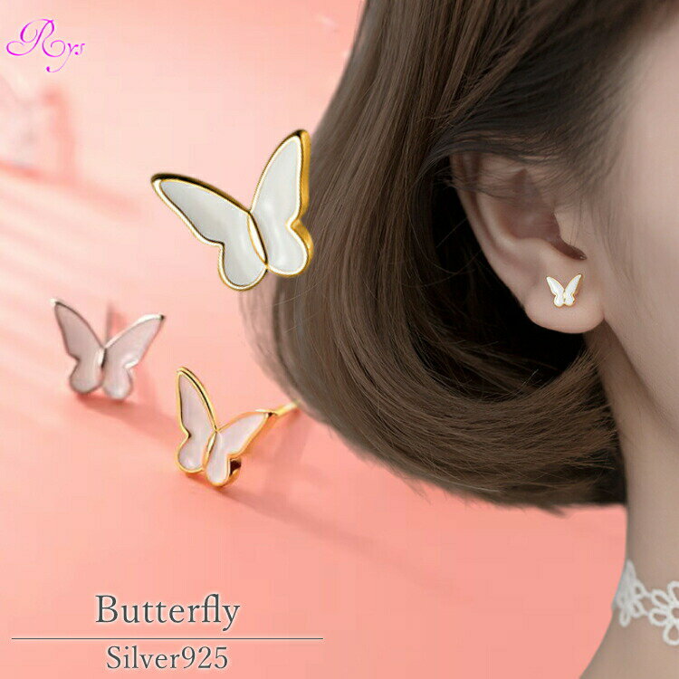 【白い蝶々のピアス】 シルバー925 ピアス ホワイト シンプル 蝶々 ちょうちょ かわいい 金属ア・・・