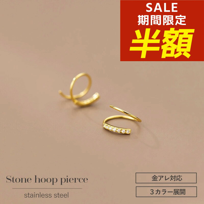 【期間限定!半額!】つけっぱなし ピアス 可愛い 金属アレルギー フープ ストーン シンプルピアス ・・・