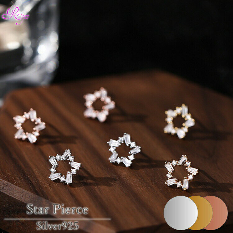 【キュービックジルコニアのスターモチーフピアス】 シルバー925 ピアス 金属アレルギー対応 星 ス・・・