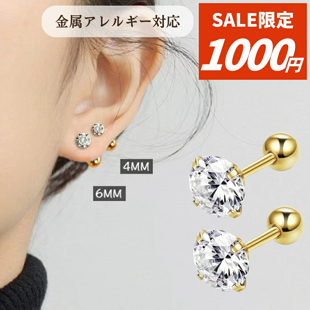 ピアス つけっぱなし シンプル 金アレ ステンレス ニッケルフリー 一粒ダイヤ ダイヤ ファーストピアス セカンドピアス 医療用ステンレス スタッドピアス ピンク ゴールド シルバー