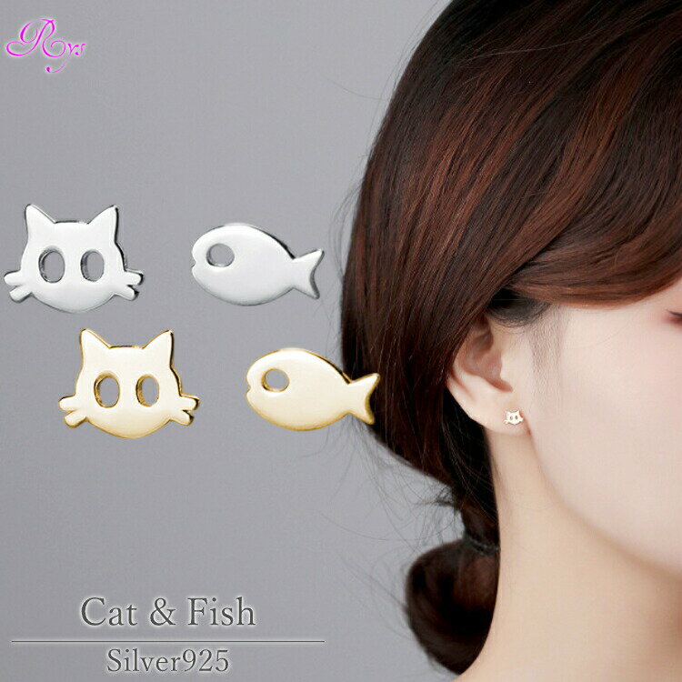 【お魚くわえてない猫ピアス】 ねこ ピアス シルバー925 猫 魚 猫モチーフ シルバー 金属アレル・・・