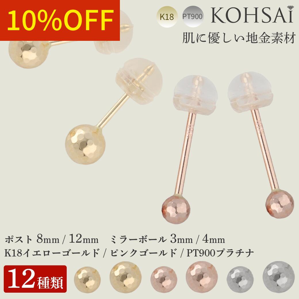 プラチナ ボール ピアス 5サイズ×3カラー 金属アレルギー対応 Pt900ポスト 日本製 Pt90・・・