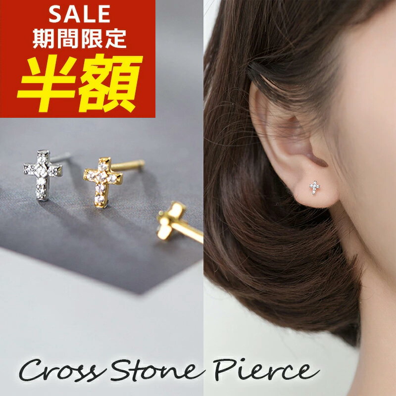 【期間限定!半額!】ピアス 十字架 クロス 一粒 ジルコニア つけっぱなしピアス 小ぶり 小さめ シ・・・