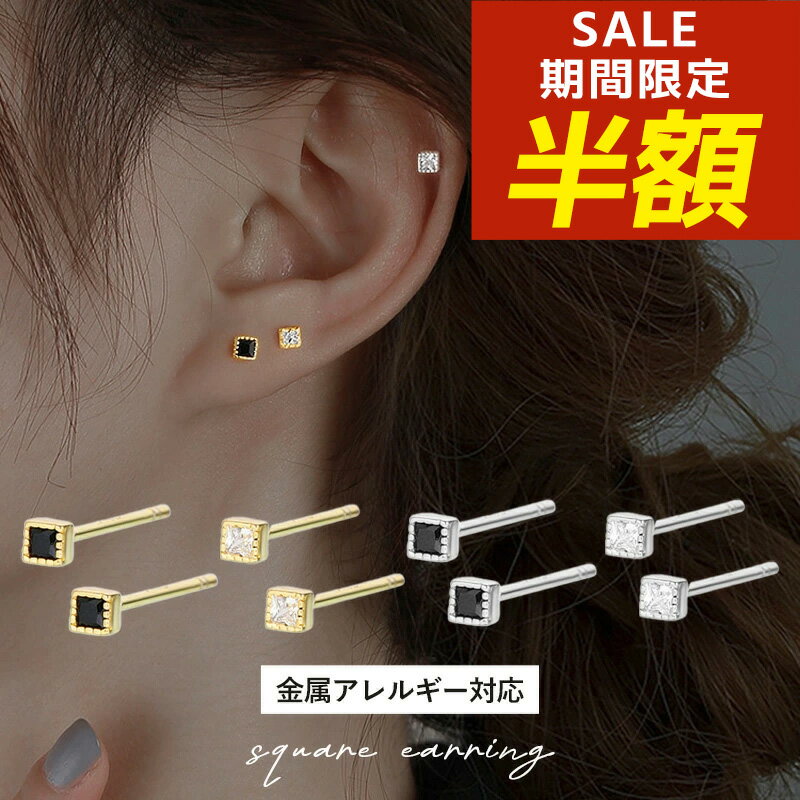 ピアス つけっぱなし 四角 四角形 シルバーピアス スタッドピアス 金アレ ニッケルフリー 大人 可愛い スワロフスキー 目立たない ストーン 送料無料 韓国 人気 上品 軟骨 レディース