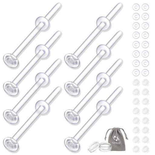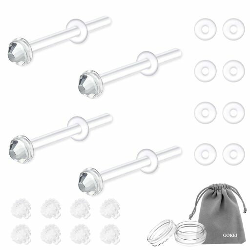 [GOKEI]透明ピアスガラスピアス【8個+32個キャッチ】ピアッサーつけっぱなし金属アレルギー対応・・・