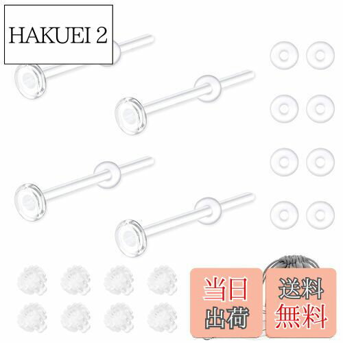 [GOKEI] ガラスピアス 透明ピアス 強化ガラス ピアス レディース 【4本ピアス+16個キャッ・・・