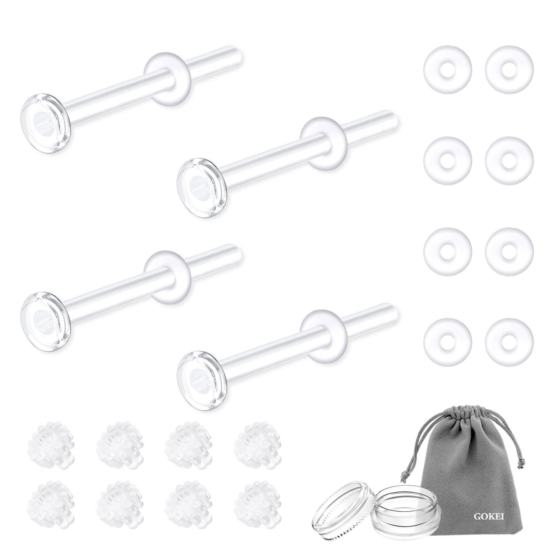 [GOKEI]透明ピアスガラスピアス【4本ピアス+8個キャッチ】透明強化ガラスガラスピアスピアッサー・・・