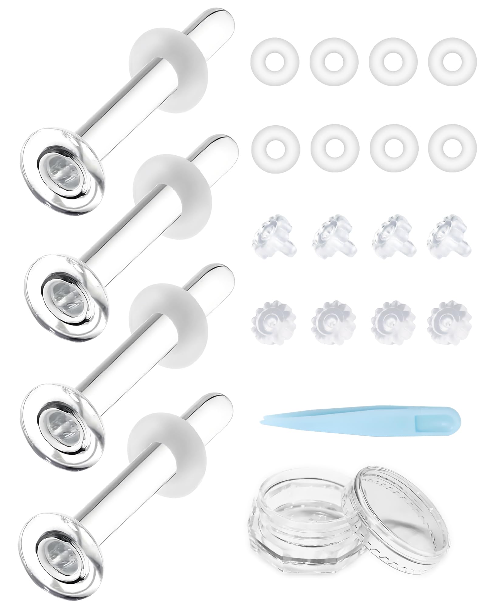 [GOKEI]透明ピアスガラスピアス【4本ピアス+8個キャッチ】透明強化ガラスガラスピアスピアッサー・・・