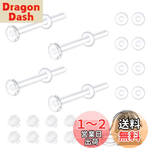 ガラスピアス 透明ピアス 強化ガラス ピアス レディース 【4本ピアス+16個キャッチ】 14G 1・・・