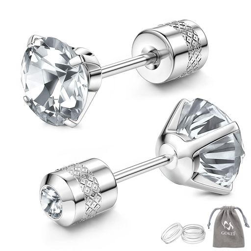 GOKEIピアスレディース【2本ネジ式ピアス+2本透明ガラスピアス】金属アレルギー対応ネジ式つけっぱ・・・