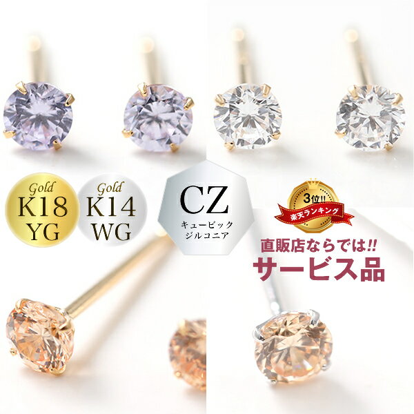 ピアス キュービックジルコニア CZ 透明 クリア 紫 パープル オレンジ ハート k18 18k ・・・
