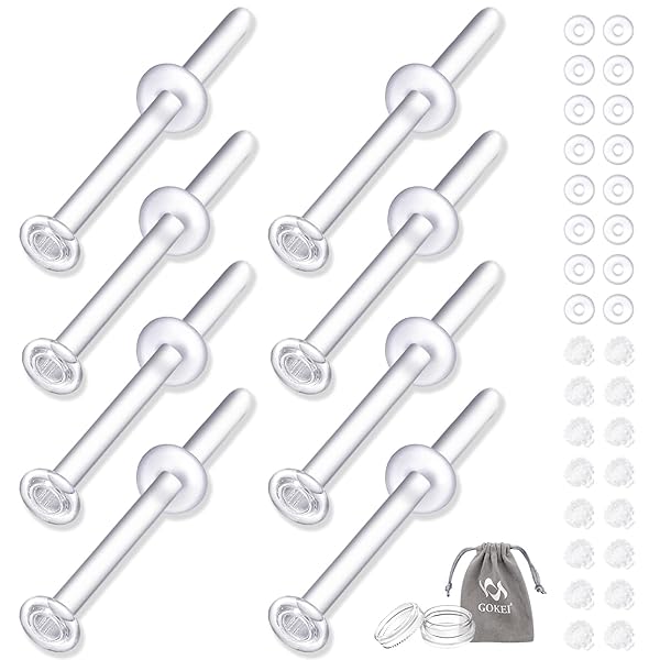 [GOKEI] 透明ピアス ガラスピアス 【8個+32個キャッチ】 ピアッサー つけっぱなし 金属ア・・・