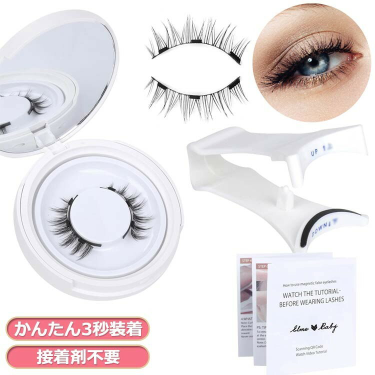 クリップ 鏡付き収納ケース 3つけまつげ つけまつ毛 接着剤不要 磁気まつげセット