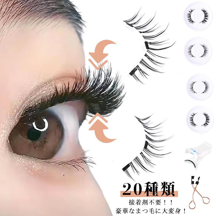磁気 2点セット! つけまつげ まつ毛 4タイプ! ナチュラル 3D 柔らかく 磁気 つけまつげ 繰り返し使用 防水 マグネット