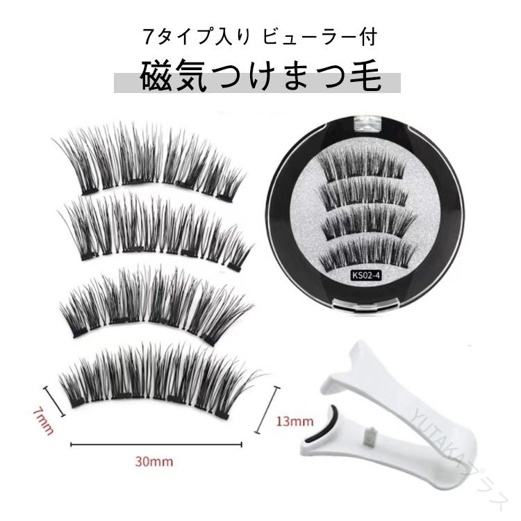 磁気 3Dカール仕上げ 7タイプ入り 磁石付き つけ睫毛 3Dつけまつげ 磁気つけま ビューラー付 ・・・