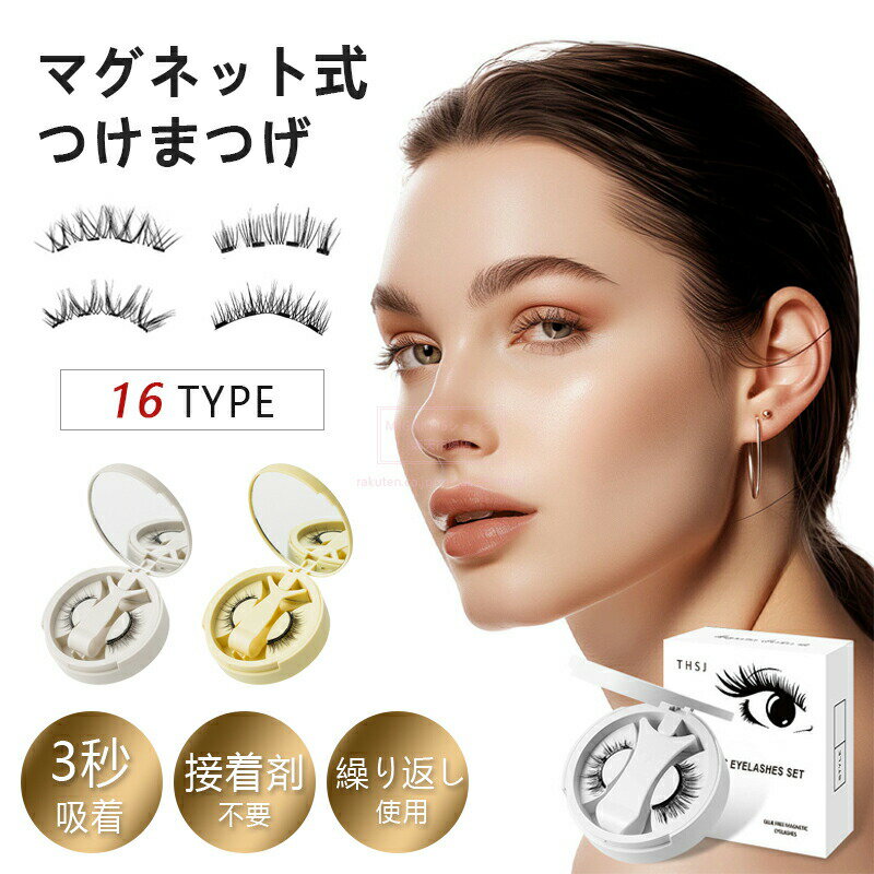 一体型 マグネットつけまつげ マグネット式つけまつげ つけまつげ 全16種 磁石まつげ 束感 接着剤・・・