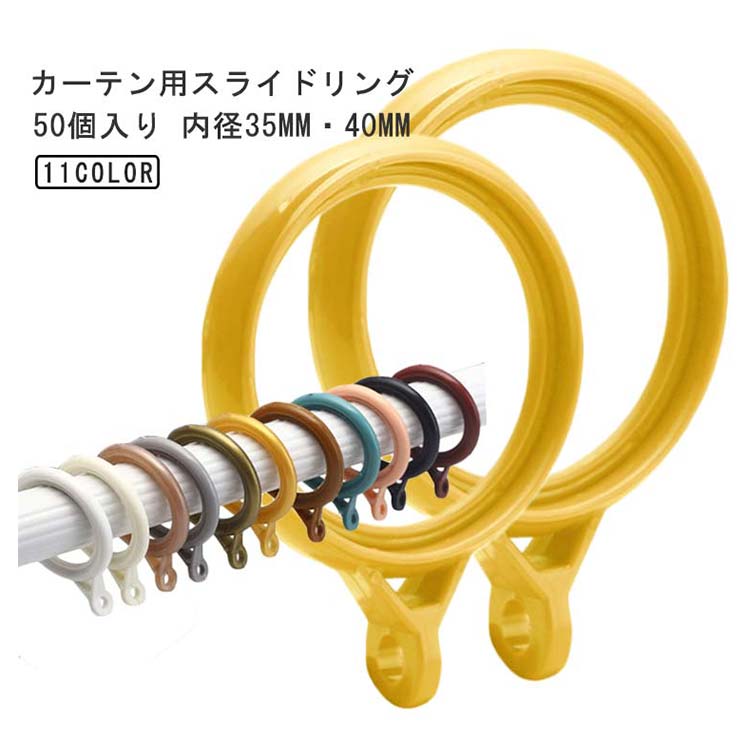 カーテン用スライドリング50個セット 内径35mm Sフック取り付け可能 多色展開