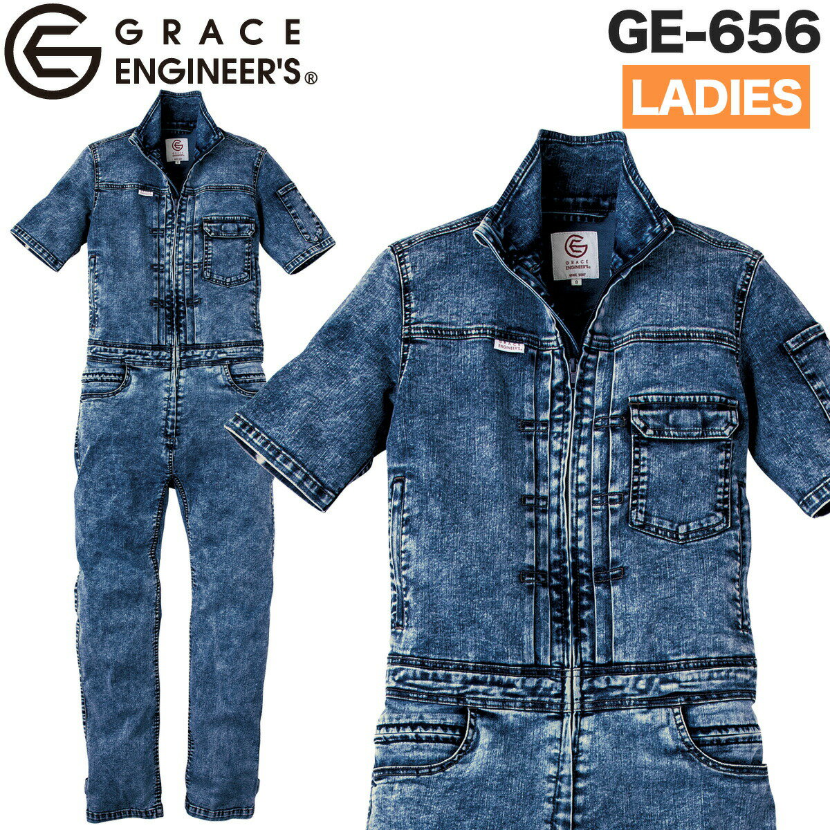 グレースエンジニアーズ 通年 半袖 ツナギ レディース デアリーウーマン デニム 作業着 作業服 限・・・