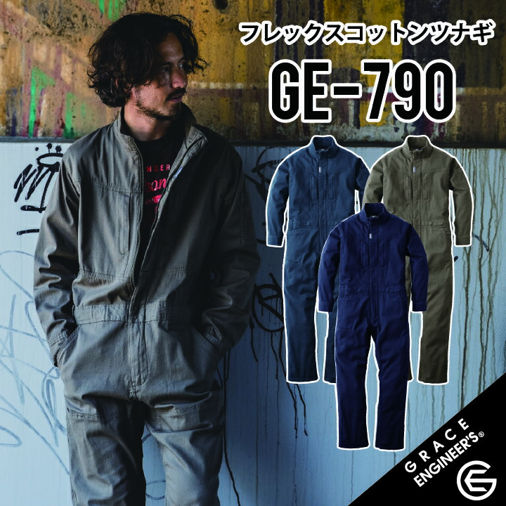 GRACE ENGINEER'S GE-677 グリッドエアーツナギ 生地全体から清涼感を感じられる、涼しい軽量ツナギ。 ヒップオープン機能で、お手洗い時のストレスからも解放されます。