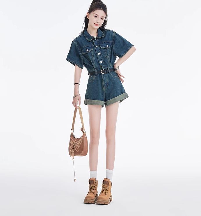 ロンパース 半袖 薄手 動きやすい デニム コットン 女の子 ベビー キッズ 夏 カジュアル スポー・・・
