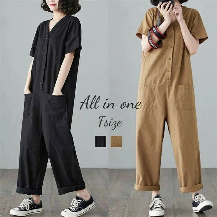 楽ちん~ 春夏に頼れる1枚 オールインワンパンツ ベージュ ブラッ