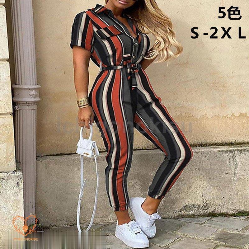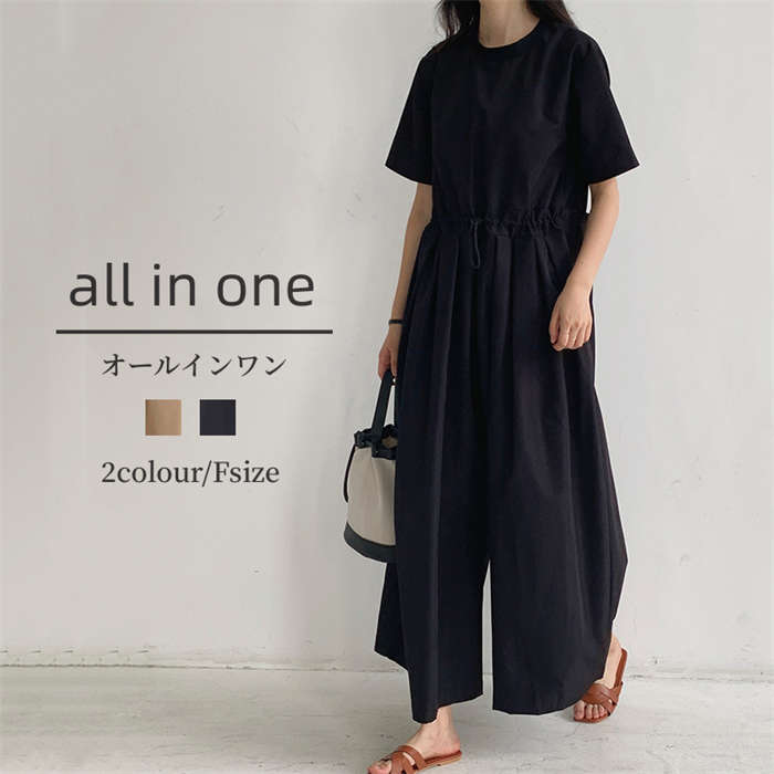 オールインワン パンツ レディース ボトムス 半袖 秋 クルーネッ