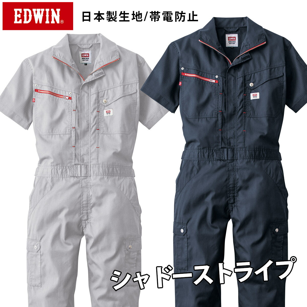 EDWIN エドウィン オーバーオール 81003 半袖春夏ツナギ服 サマーツナギ デニム風 メンズ・・・