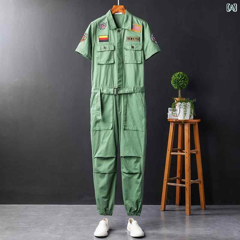 つなぎ オーバー オール 作業着 若々しく メンズ ジャンプ スーツ 薄手 ヒップ ホップ 半袖 ス・・・