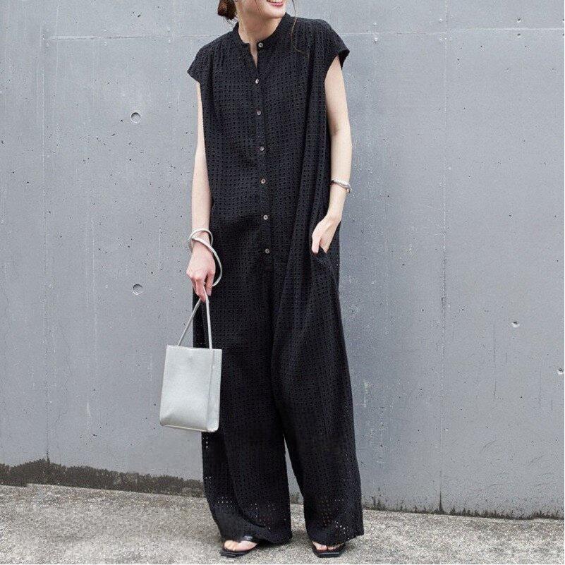 大人の オールインワン!つなぎ 半袖 透け感 夏用 抜け感のある