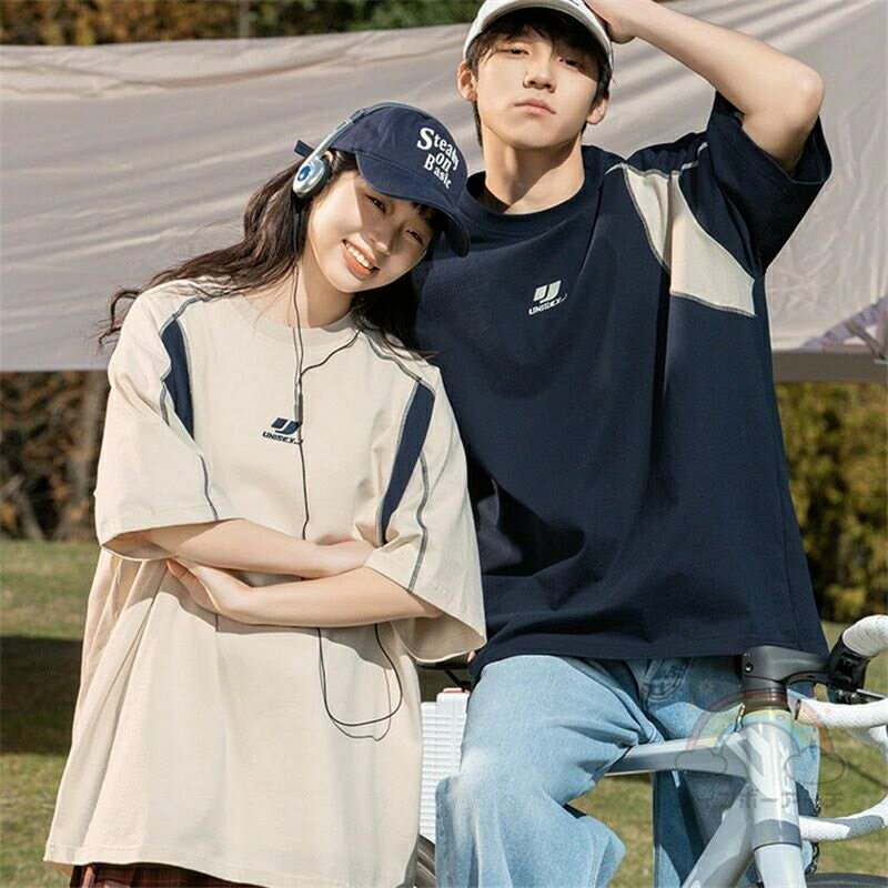 カップル ペア tシャツ ブランド シンプル カジュアル tシャツ 刺繍 夏 つなぎ 半袖 アメカジ・・・
