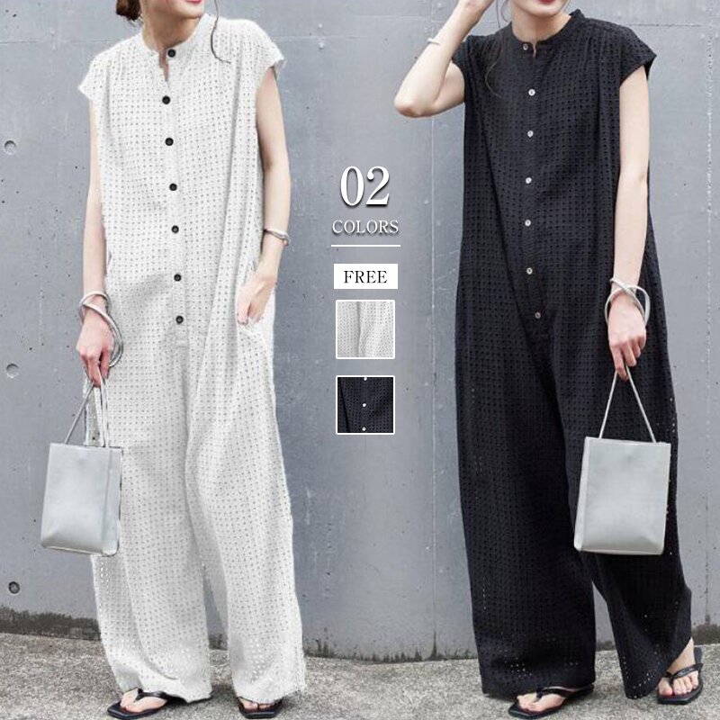 大人の オールインワン!つなぎ 半袖 透け感 夏用 抜け感のある