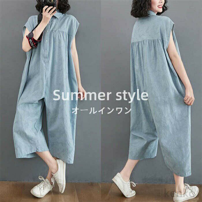 大人の オールインワン!つなぎ 半袖 透け感 夏用 抜け感のある