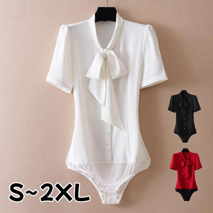 オフィスブラウス ボディーブリファー つなぎ 無地 シンプル ワイシャツ ブラウス ボウタイ リボン・・・