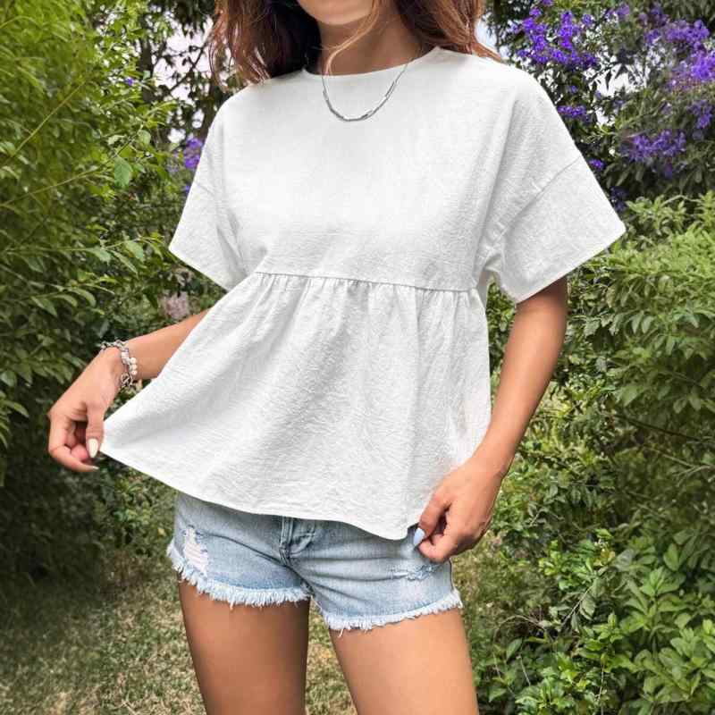 ティアード チュニック ブラウス ぽわん袖 レディース 四角い 襟の 半袖の ニットの t シャツは・・・