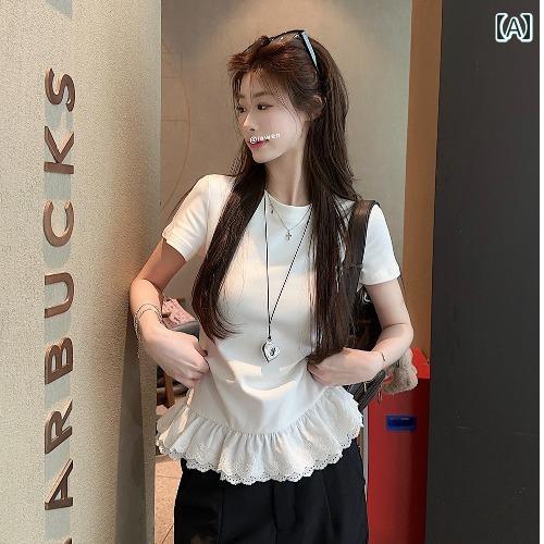 ブラウス レディース パステルカラーレースブラウス フランスの 蝶 結びの 半袖の シャツ レディー・・・