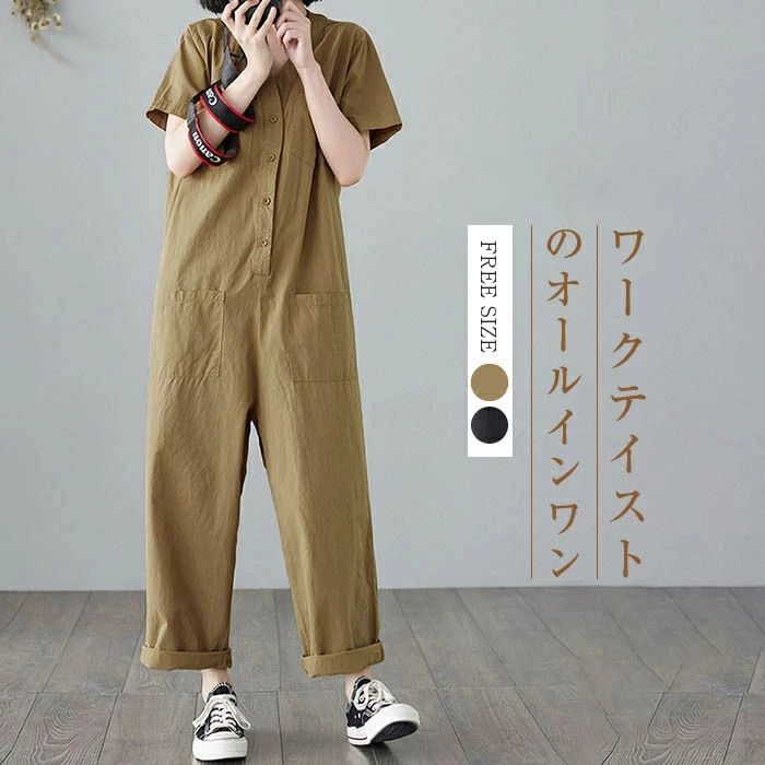 ★ 送料無料 ★ サロペット つなぎ レディース 半袖 オールイン