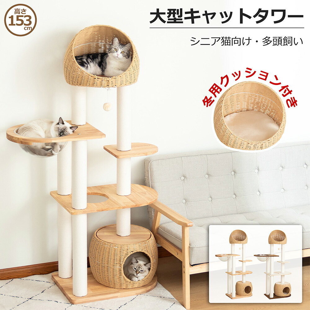 【冬迎えクーポン⇒12800円】特大ハウス キャットタワー 据え置き おしゃれ 手編みカゴ 木製 人・・・