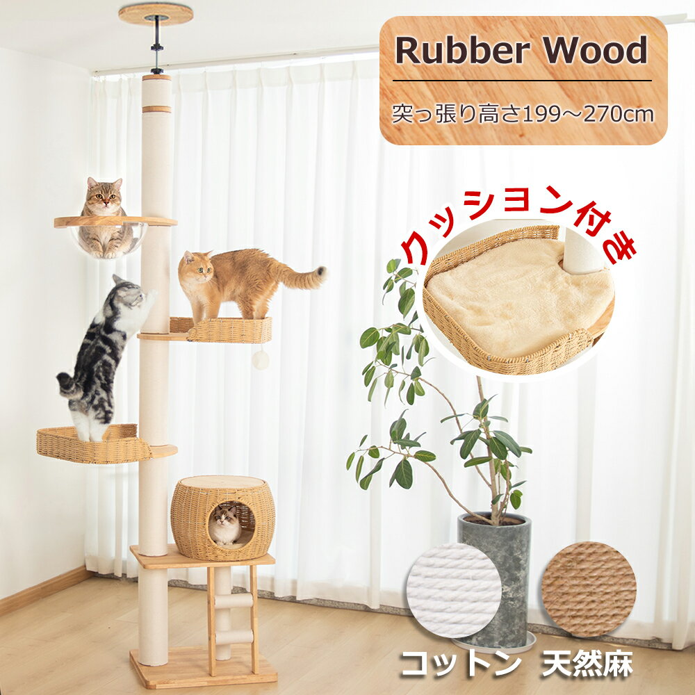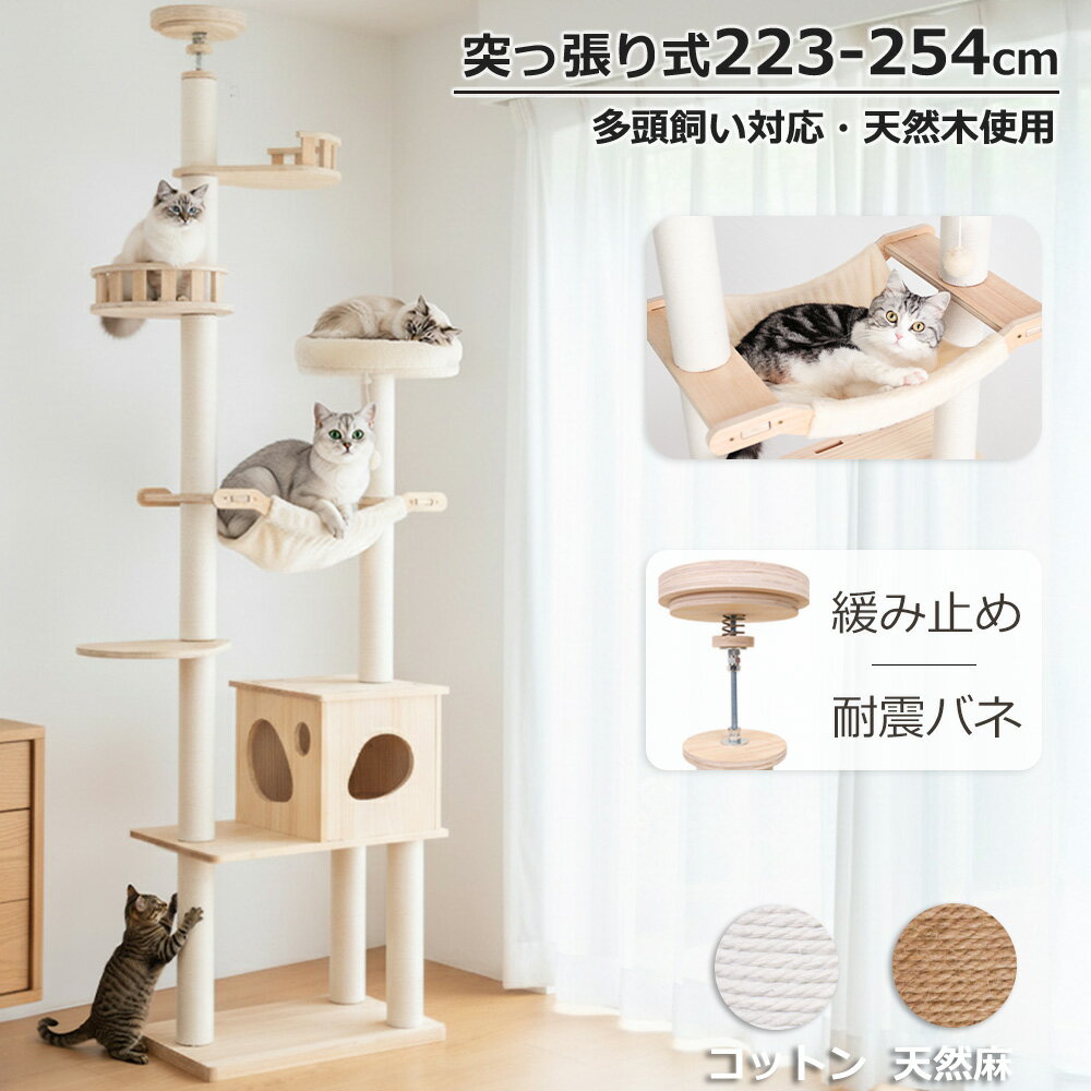 【SS限定クーポン⇒13800円】 キャットタワー 突っ張り 木製 人気 ハンモック 安定性 短足猫・・・